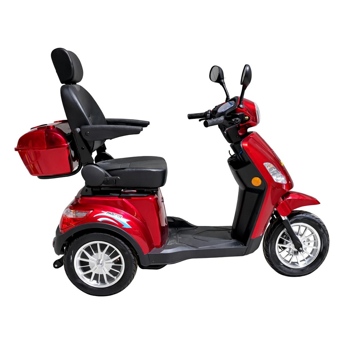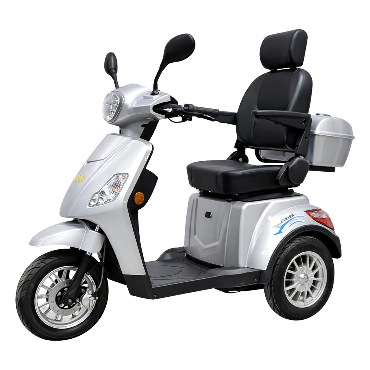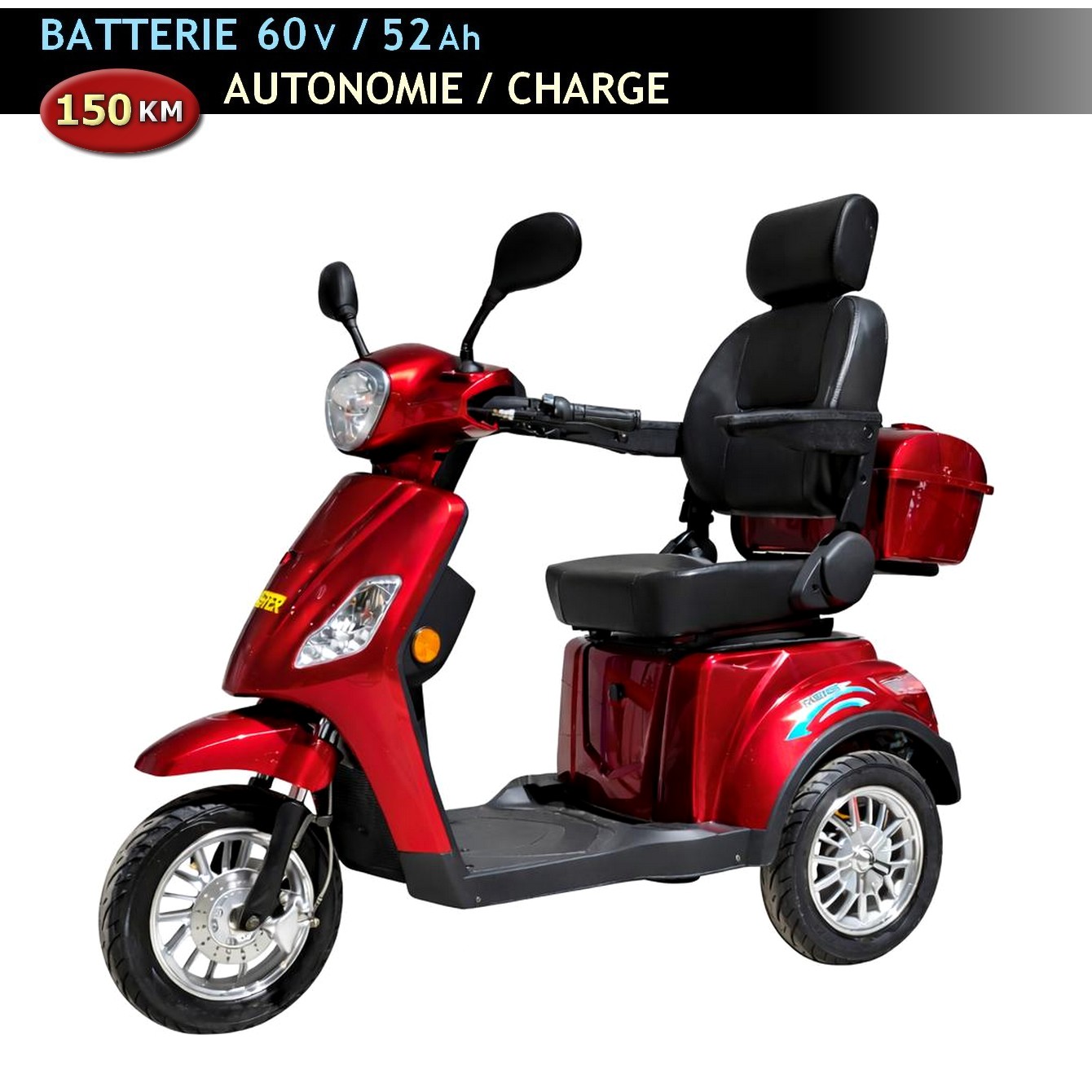 Voici la toute dernière édition du triporteur Faster T1 avec sa nouvelle suspension hydraulique ultra confortable unique sur le marché, laquelle offre un confort sans pareil sur un grand nombre de types de surface. Ce triporteur électrique est offert avec une batterie de 60 Volts et 52 Ampères permettant d’alimenter sans problème son puissant moteur électrique de 800 Watts. Avec une autonomie pouvant aller jusqu’à 150 km selon les conditions, ce scooter et ses trois roues vous permettront de vous rendre aux endroits où vous souhaiter.