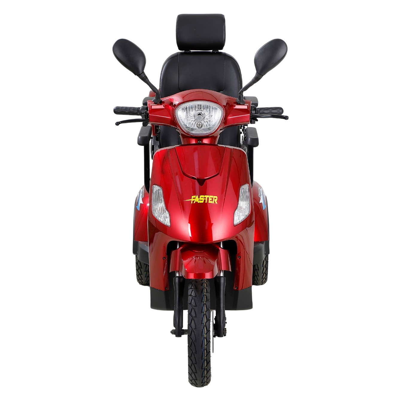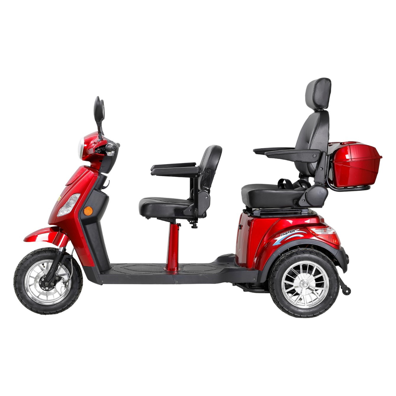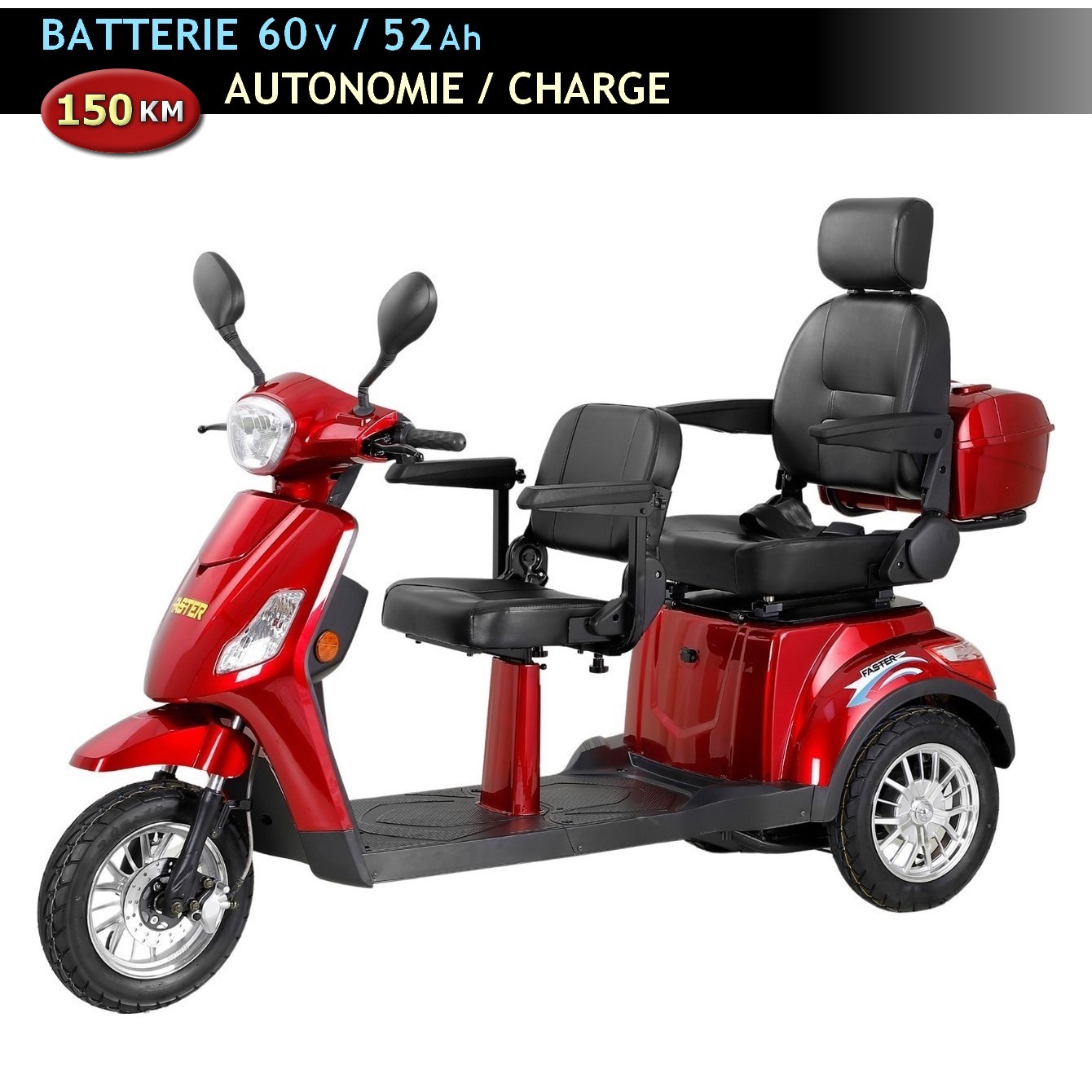 Voici notre triporteur électrique Faster T1DS. Celui-ci se veut la version avec deux sièges de notre populaire modèle Faster T1 Cet appareil et ses 2 sièges dispose d’une toute nouvelle génération de suspension hyper-confortable, et qui à l’heure actuelle est unique sur le marché canadien. Grâce à celle-ci, vous ressentirez lors de vos déplacements un confort sans équivalent sur une multitude de surfaces. Autre particularité supplémentaire, un système de freinage automatique équipe maintenant ce modèle. Ce dernier permet d’être activé grâce à un simple interrupteur, offrant ainsi une sécurité accrue au conducteur et à l’éventuel passager.