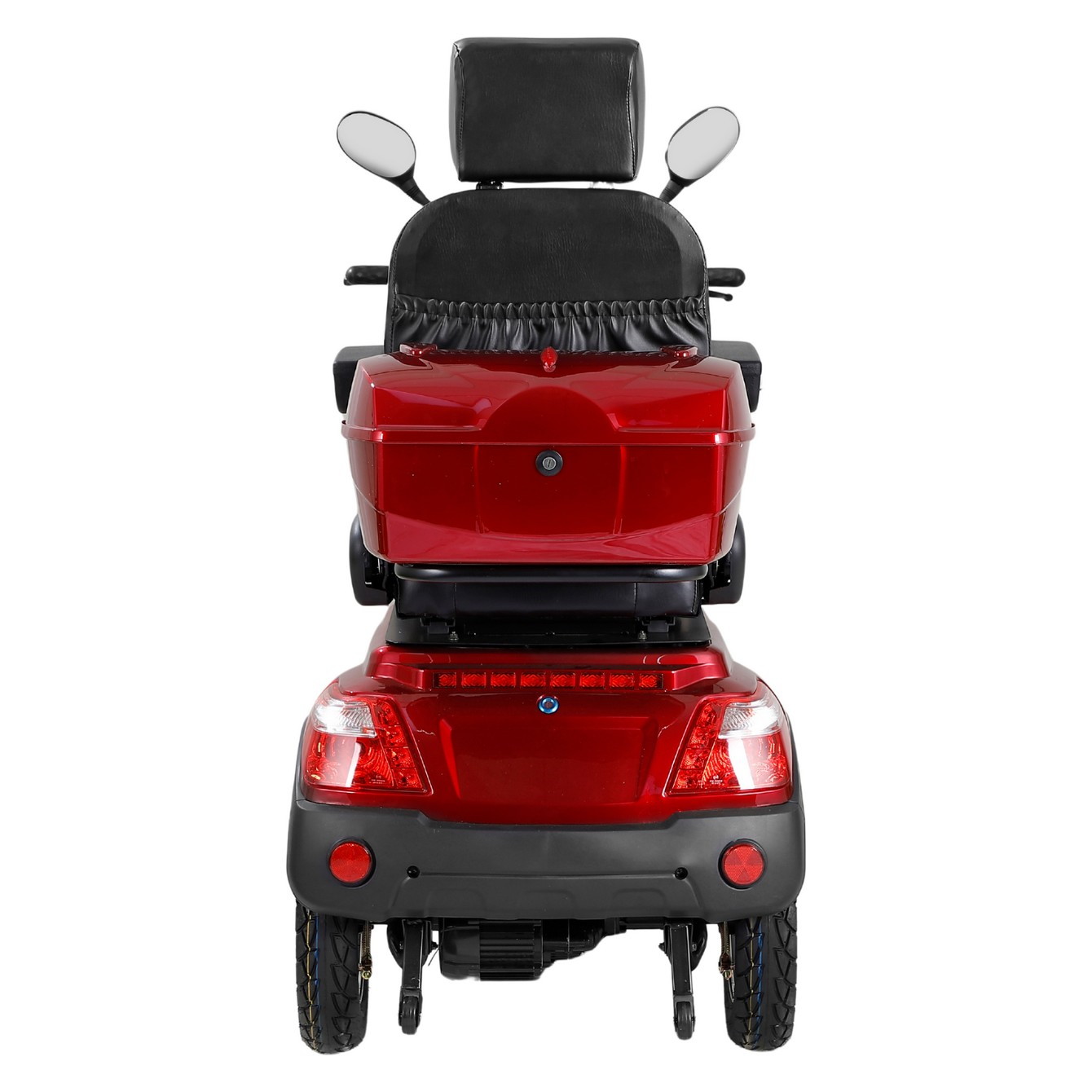 Sachez également que ce véhicule est équipé d’un interrupteur permettant d’activer le chauffage des poignées lors des journées plus froides. En outre, est aussi présents une radio Bluetooth/USB ainsi qu’un port de charge pour téléphone portable. Vous pourrez donc écouter votre station préférée ou y connecter votre téléphone intelligent via le protocole sans fil Bluetooth pour y diffuser la musique de votre choix. Ce modèle de scooter électrique 3 roues dispose d’un coffre de rangement verrouillable à l’arrière, permettant d’y laisser ses achats en sécurité et à l’abri des regards indiscrets.